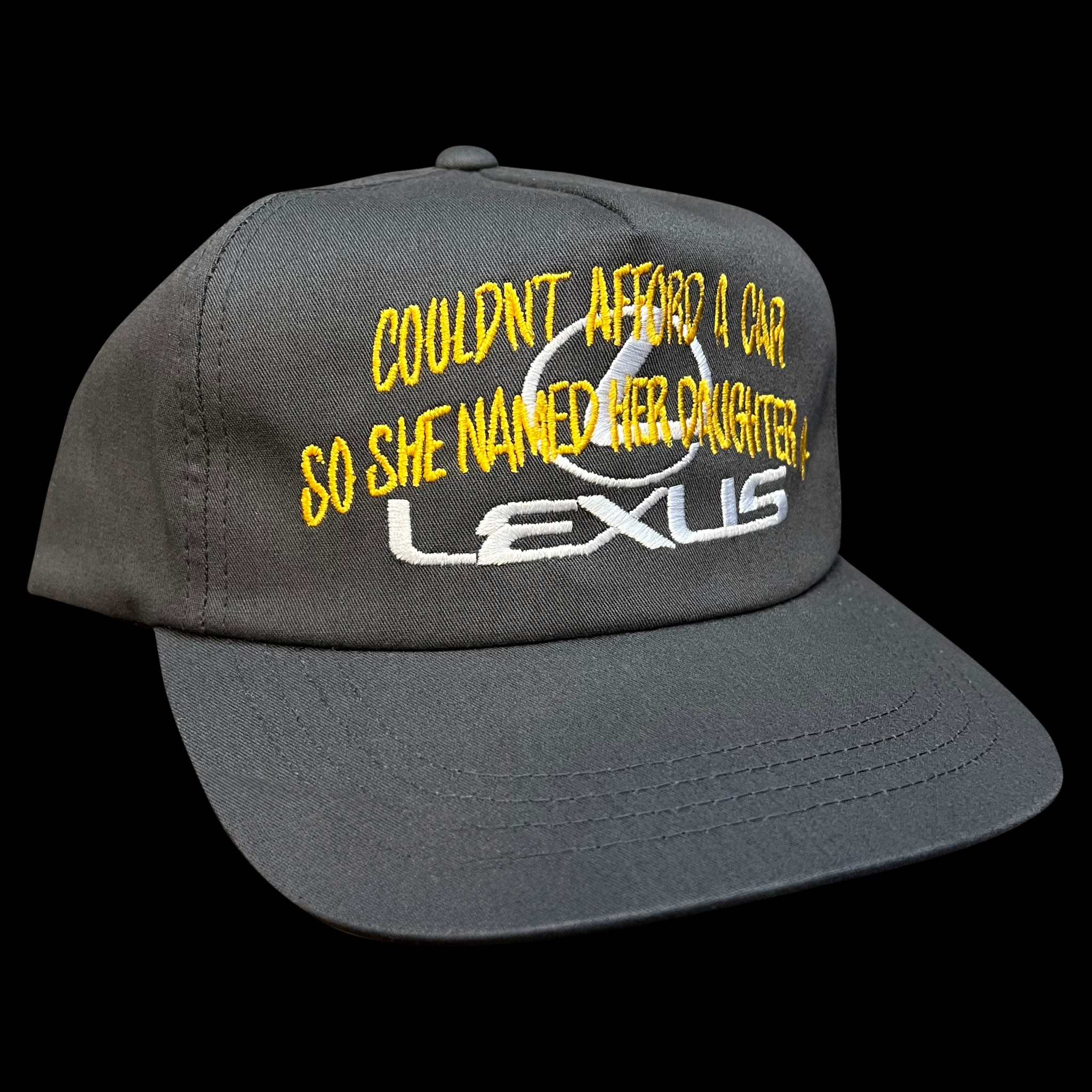 Charcoal Grey unstructured 5-panel snapback. I miss the old Kanye.
